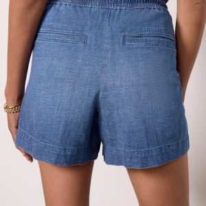 Top off your summer wardrobe with the Elodie short by EVEREVE. Crafted in lightweight chambray fabric,these high-rise shorts feature a drawstring elastic waist, side slant pockets, and back welt pockets. Keep them casual with a tee and slides, or add a sweater tank and wedges for an elevated look.