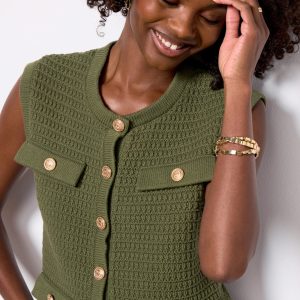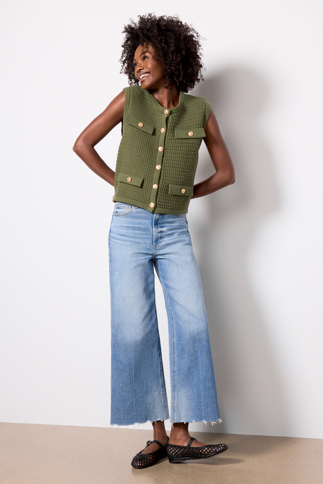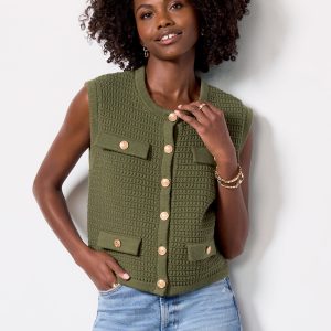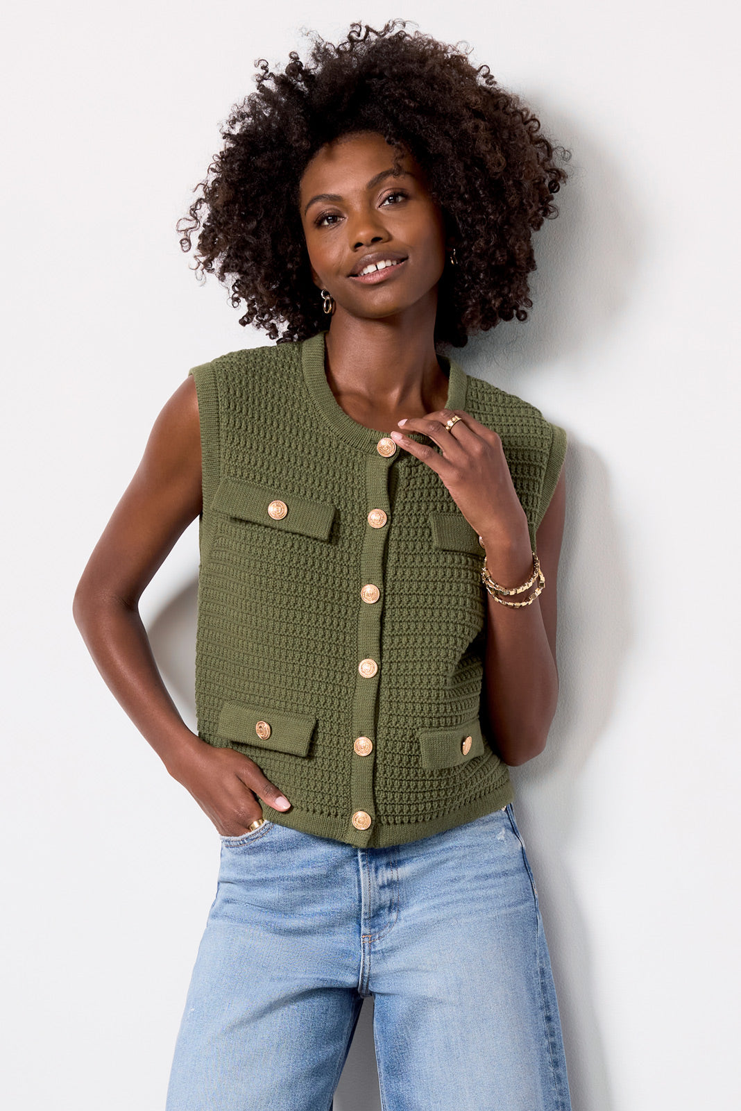 Chic and polished, the Smooth Sailing LadyLike sweater vest by BlankNYC is crafted in a textured cotton-blend knit and features a cropped silhouette with a round neckline, ribbed trim, and gold button closures.