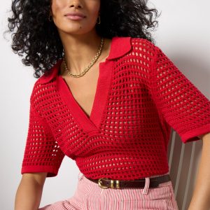 Elevate your warm-weather sweater collection with the Teagan Pullover by EVEREVE. This chic open-weave sweater is crafted in a breezy cotton knit and features a collared neckline, short sleeves, and ribbed trim.