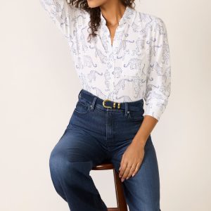 A chic pick for work or play, this Rails button-down is crafted in soft woven challis fabric and features a relaxed silhouette, left chest pocket, andjaguar pattern for a stylish edge.