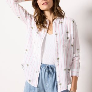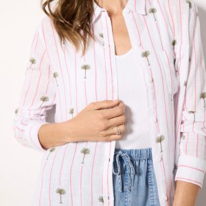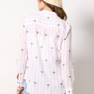 A palm tree designadds a spring-ready touch to this linen-blend shirt by Rails, featuring a relaxed fit, curved hem, and left chest pocket.