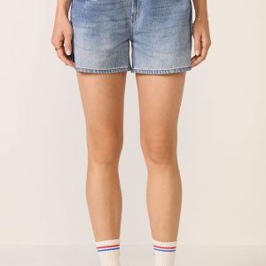 The look of denim with the comfort of your favorite lounge bottoms. Finished with sporty side stripes, these pull-on shorts by rag & bone are finished in their signature Miramar fabric, a super-soft terry made to look like denim, with side seam pockets, printed belt loops, printed 5-pocket styling, and a printed button.