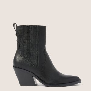 A versatile addition to your footwear collection, the Vaydinleather ankle booties by Dolce Vita feature a pointed-toe silhouette with an angled block heel, inside zipper closure, and stitched detailing.