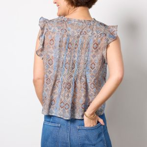 Polish your wardrobe with the Idris Top by Paige, featuring a split neckline, partial front button placket, flutter sleeves, and a slightly cropped silhouette.