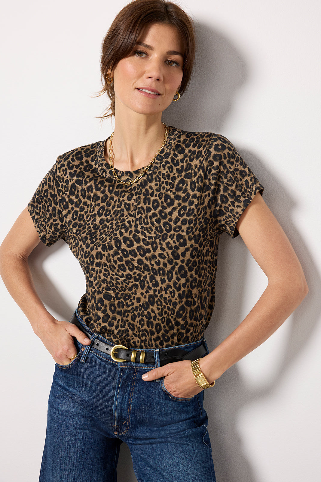Achic animal print elevates the Perfect Tee by Sanctuary. Cut from soft knit fabric ina classiccrewneck silhouette, this tee will take you from day to night in style.