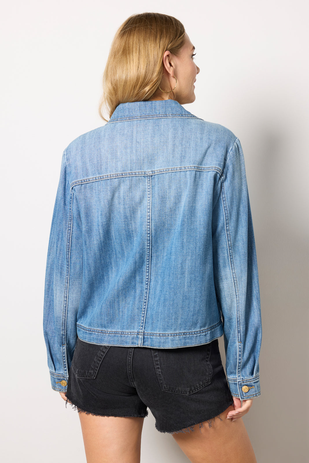 Layer any day-to-night look with the Arya denim jacket by KUT From The Kloth, finished in a soft cotton blend with a relaxed fit, front button closures, and a single chest pocket.