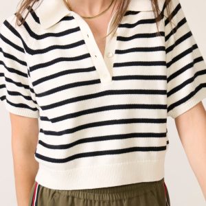 Craftedin a sustainable knit with a hint of silk, this so-chic polo sweater by Paige features a boxy, cropped silhouette with feminine puff sleeves and a collaredbutton-front neckline.