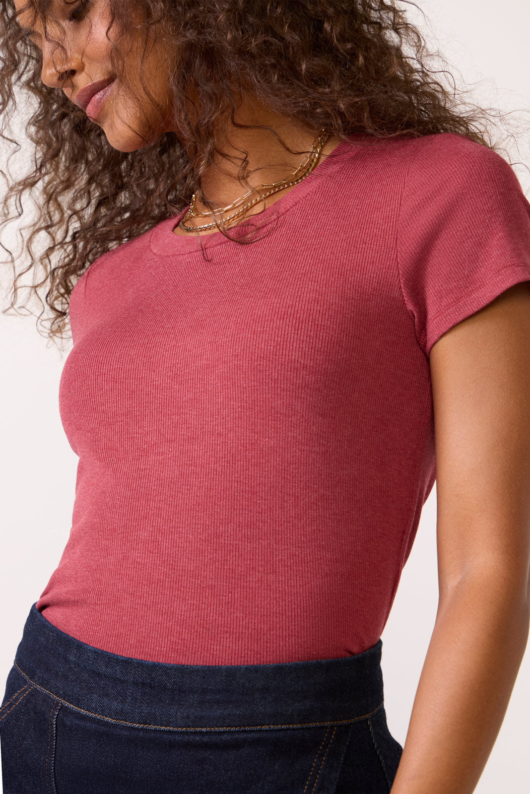 This versatile tee by LNA is the perfect wardrobe essential, crafted in soft rib knit fabric with a crew neckline, slim fit, and short sleeves.