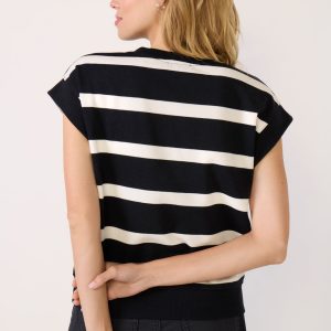 Perfect for everyday wear, this striped sweatshirt by EVEREVE features a crewneck silhouette with cap sleeves and a banded hem.