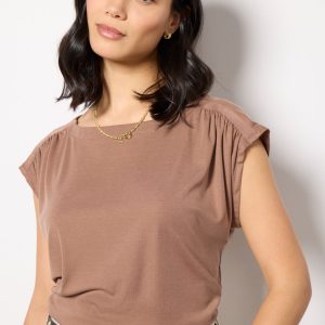 The Addalyn Gathered Top is the perfect addition to your everyday tops, featuring a boat neckline, a back center seam, and a relaxed silhouette.