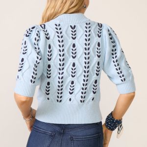 Designed with contrast cable stitching, the Addy pullover sweater by Rails features a stylish cropped silhouette with a mockneck collar, short puff sleeves, and ribbed trim.