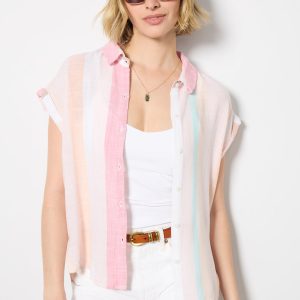 From brunch plans to beach days, this striped button-down shirt by Splendid is the perfect pick for summer,featuring a relaxed fit, cap sleeves, and lightweight linen-blend fabric.