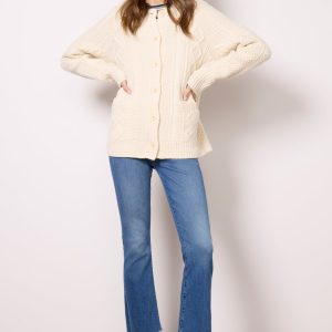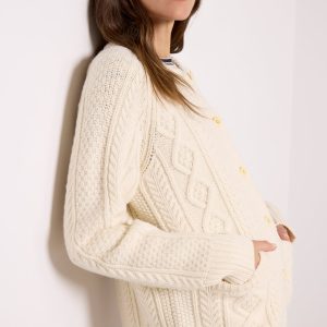 With a classic fisherman-style design, this Alex Mill cardigan is the perfect addition to your sweater-weather collection. The Agnes Sweater is crafted from extra fine merino wool and features a button-front silhouette with a round neckline, cable stitching, and front patch pockets.
