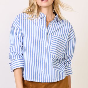 Crafted in striped cotton fabric, this button-down shirt by EVEREVE is perfect for work-to-weekend wear, featuringlong sleeves with button tabs, a left chest pocket, and a cropped silhouette for a chic, modern feel.