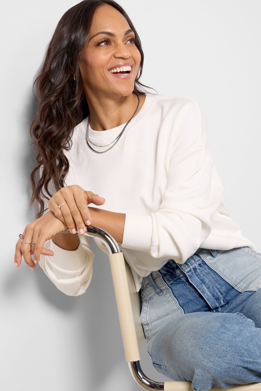 Laidback and luxe, the AirEssentials Crew sweatshirt by Spanx will be your favorite everyday staple. Finished with a pleated back detail and banding at the hem and cuffs, this relaxed pullover is crafted in airy, ultra-soft fabric for throw-on-and-go comfort.