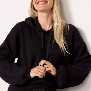 Laidback and luxe, the AirEssentialshoodie by Spanx will be your favorite everyday staple.Designed with a cropped fit, adjustable drawstring hood, and elastic at the hem and cuffs,this relaxedsweatshirt is crafted in airy, ultra-soft fabric for throw-on-and-go comfort.