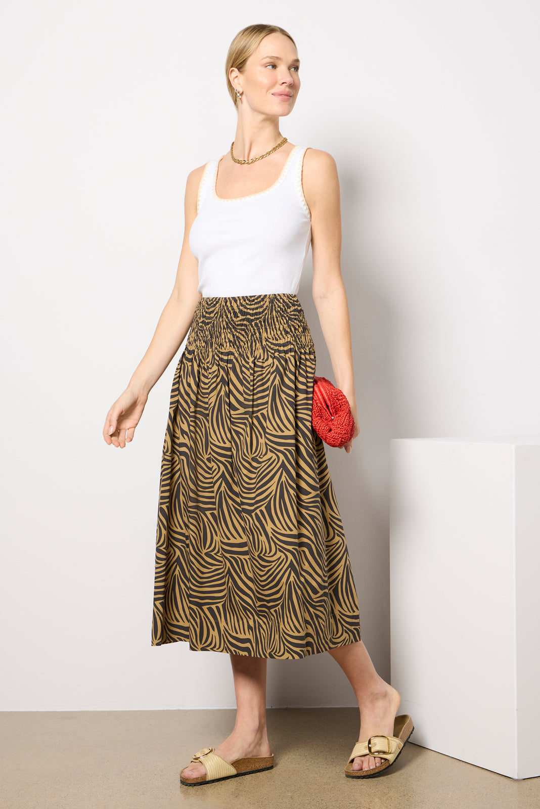 Add a bold print to your wardrobe with the Alessa Skirt by Rails, featuring a flattering smocked elastic waistband, a midi-length silhouette, and pleating details.