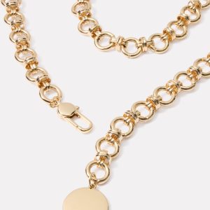 Give your look a chic touch with the Alisha chain link belt by EVEREVE, featuring a gold-tone finish and clasp closure to adjust to a customized length.