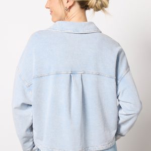The All Day Cropped Knit Jacket by Z Supply is crafted in a soft cotton blend and features a curved hemline, large front pockets, and a classic shirt collar.