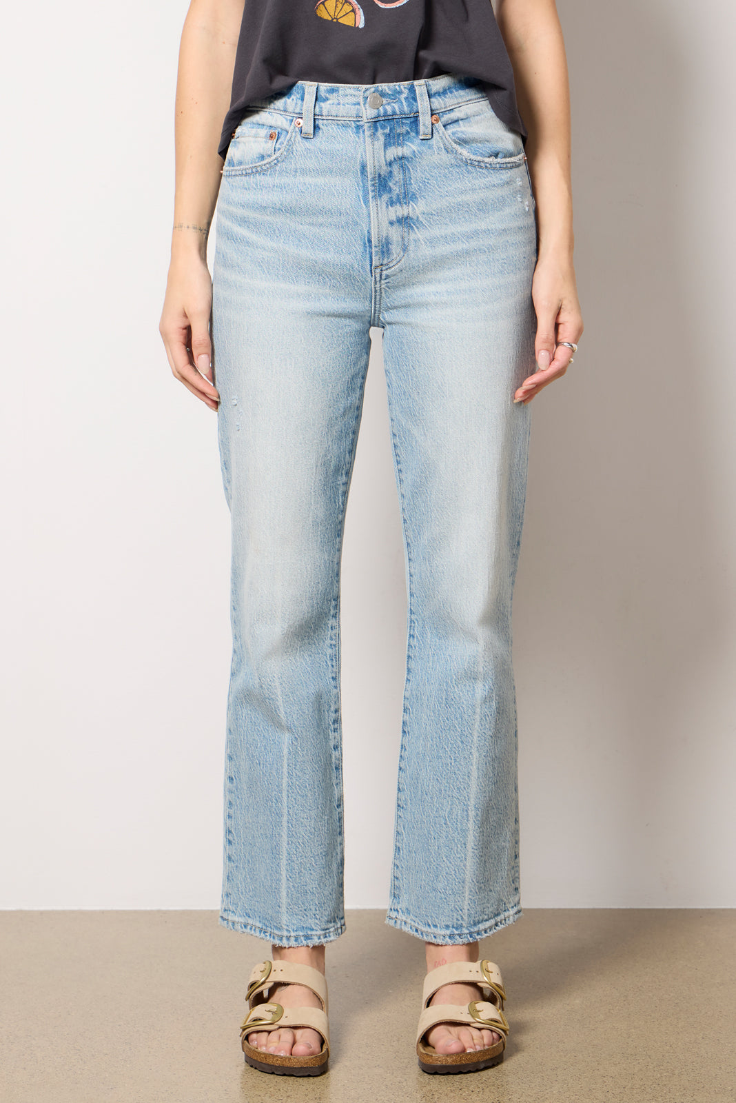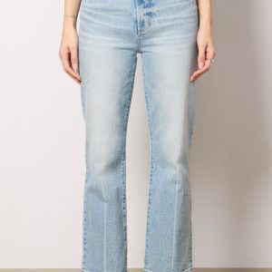 Crafted in comfortable stretch denim, the Ally Ankle Boot Jean from Pistola features a high-rise waist, cropped hems, and a slightly relaxed silhouette.
