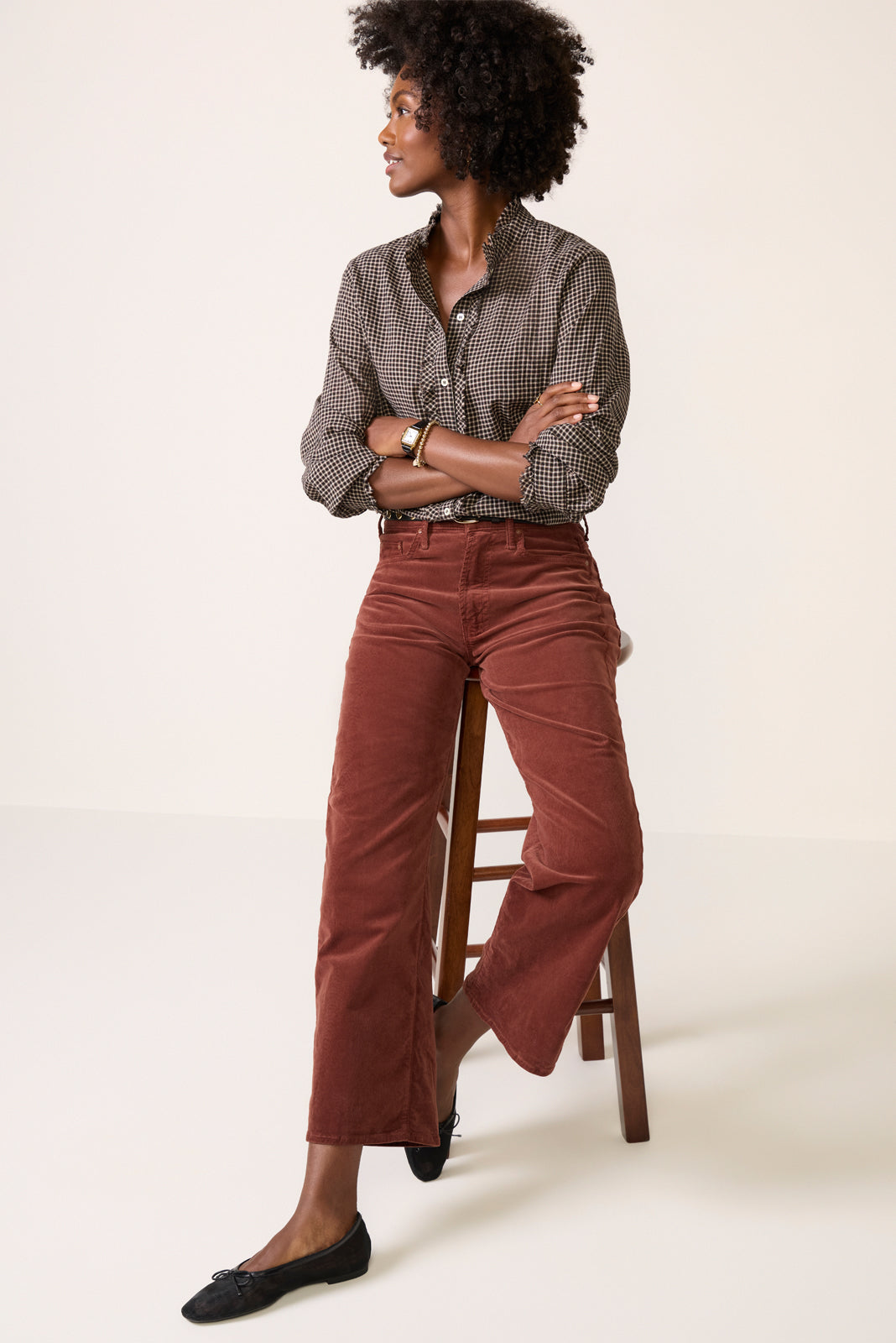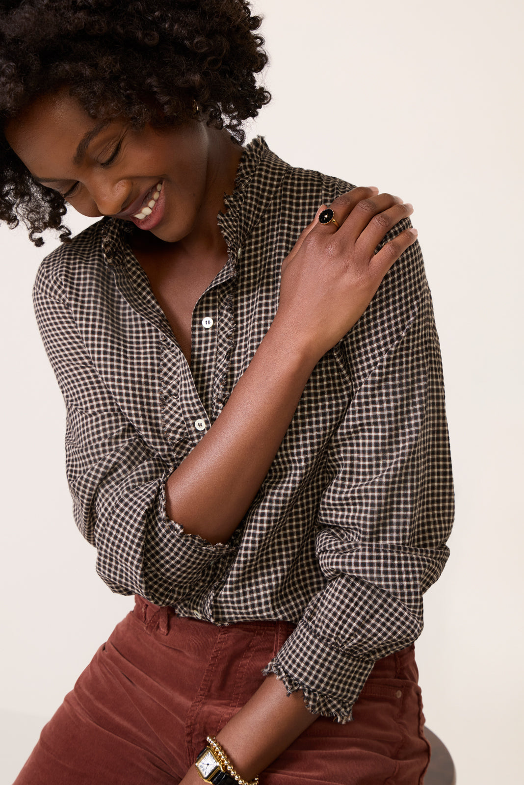 Effortlessly polished, the Amelie plaid button-down shirt by Xirena features a relaxed silhouette, cotton-blend fabric, and ruffled, frayed trim for a stylish touch.