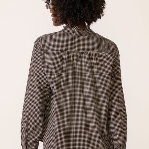 Effortlessly polished, the Amelie plaid button-down shirt by Xirena features a relaxed silhouette, cotton-blend fabric, and ruffled, frayed trim for a stylish touch.
