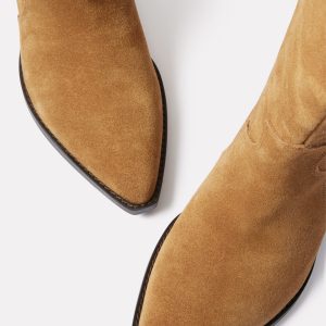 A Western-inspired designdefines these stylish knee-high boots by Marc Fisher LTD, crafted in soft suede with a pointed toe and angled block heel.