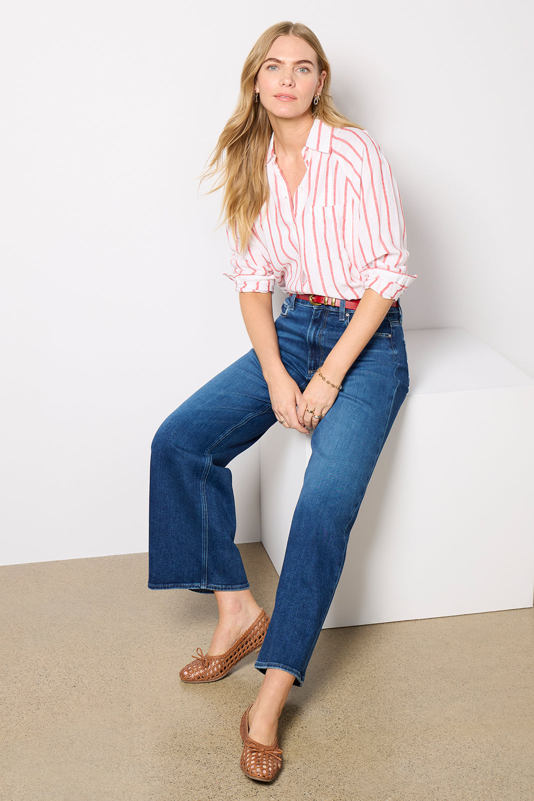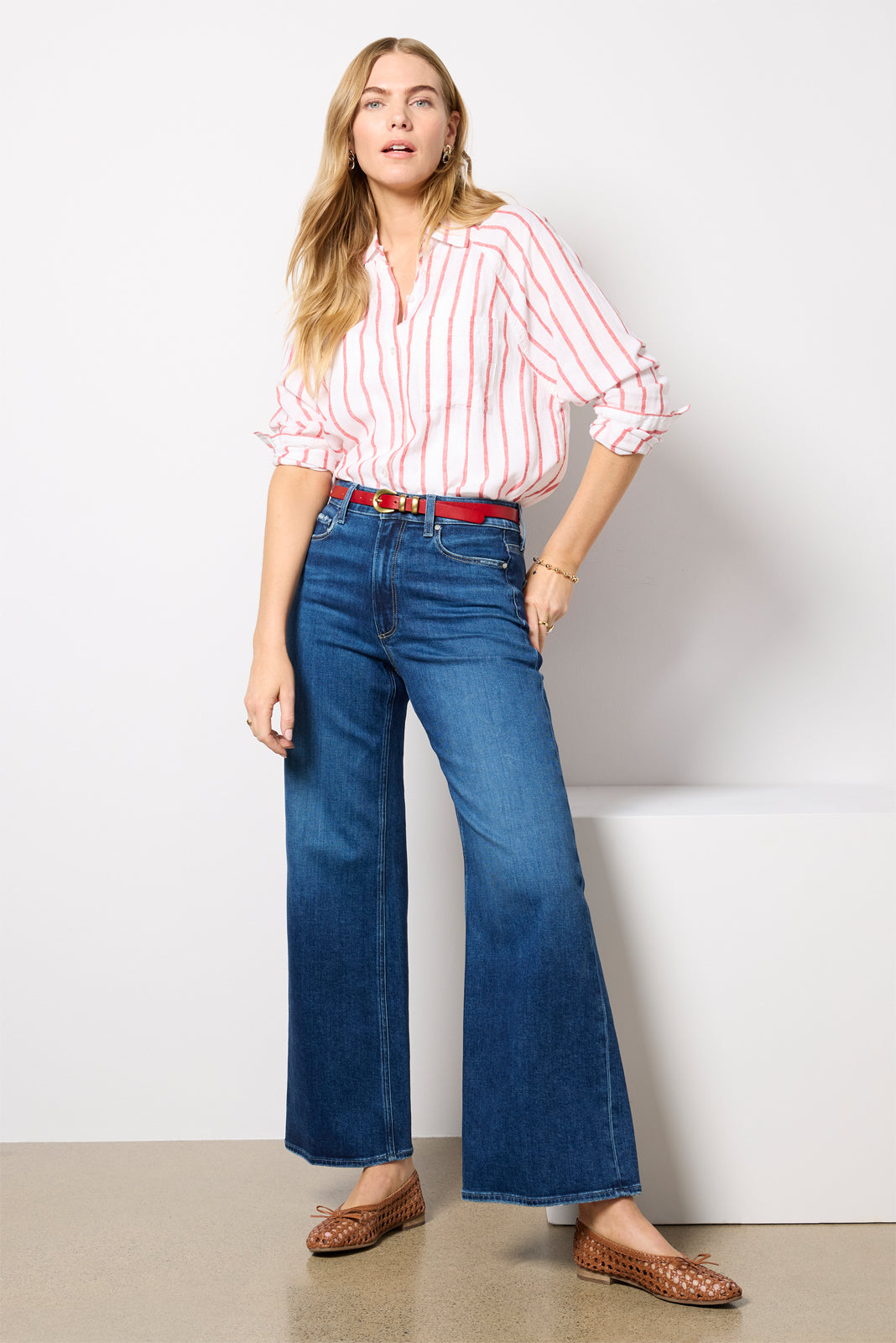 The wide leg jean you’ll be wearing on repeat. Finished with a full-length 31″ inseam, these Paige jeans are crafted in soft stretch denim with a flattering high-rise fit and classic blue wash.