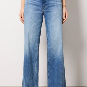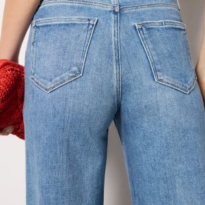 The wide leg jean you’ll be wearing on repeat. Finished with a full-length 31″ inseam, these Paige jeans are crafted in soft stretch denim with a flattering high-rise fit, faded blue wash, and raw hems.