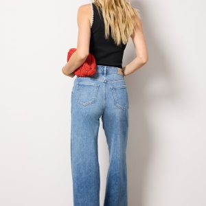 The wide leg jean you’ll be wearing on repeat. Finished with a full-length 31″ inseam, these Paige jeans are crafted in soft stretch denim with a flattering high-rise fit, faded blue wash, and raw hems.