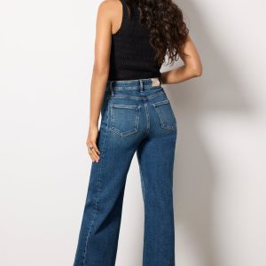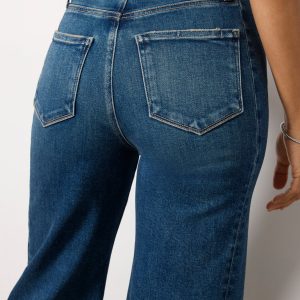 The wide-leg jean you’ll be wearing on repeat. Finished with a full-length 31″ inseam, these Paige jeans are crafted in soft stretch denim with a flattering high-rise fit, dark blue wash, and side seam inset details.