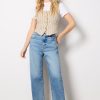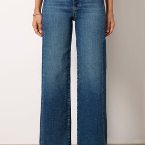 The wide-leg jean you’ll be wearing on repeat. Finished with a full-length 31″ inseam, these Paige jeans are crafted in soft stretch denim with a flattering high-rise fit, dark blue wash, and side seam inset details.