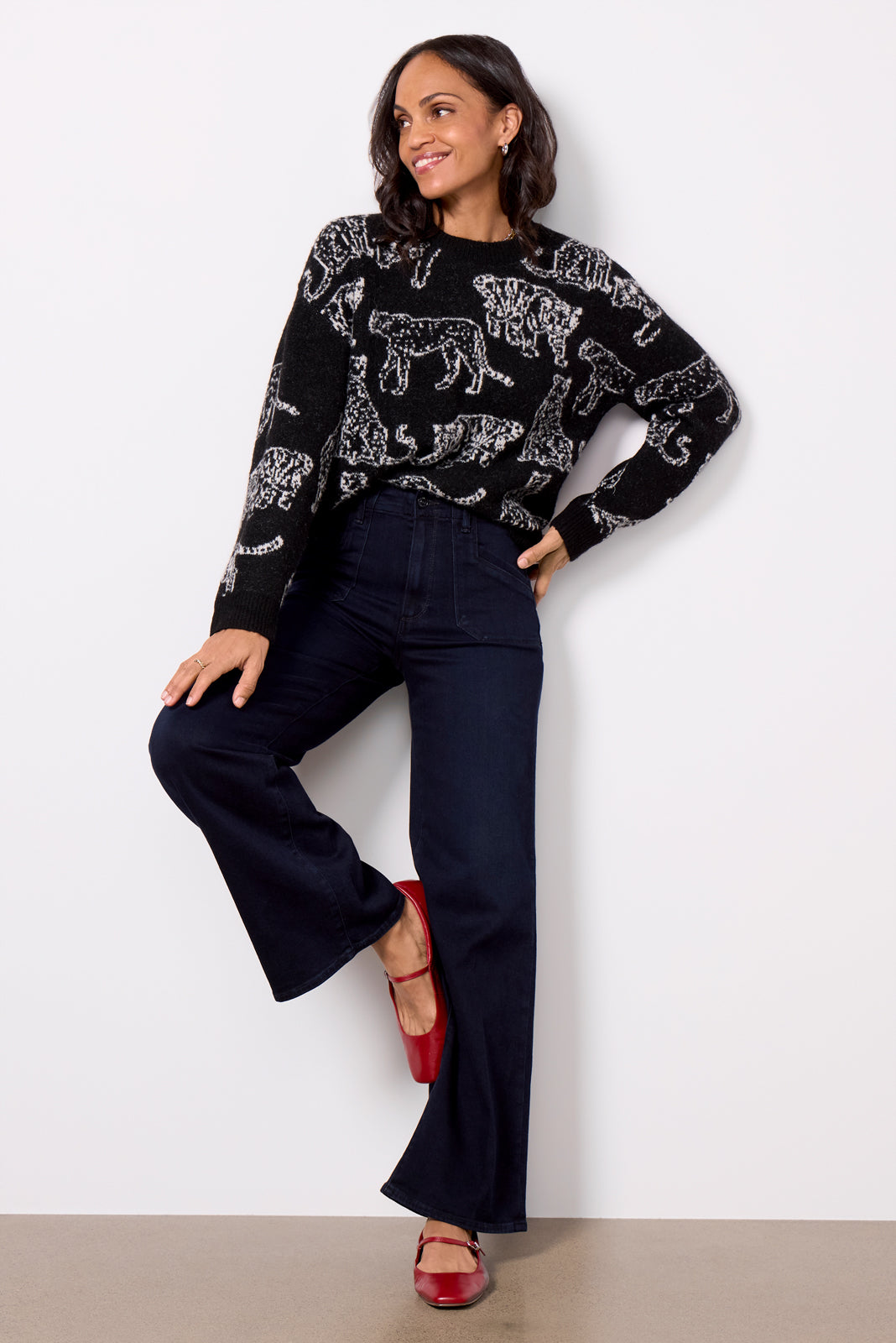 The wide-leg jean you’ll be wearing on repeat. Finished with utility-style pockets, these Paige jeans are crafted in soft stretch denim with a flattering high-rise fit,dark blue wash, and full-length hems.
