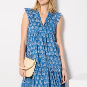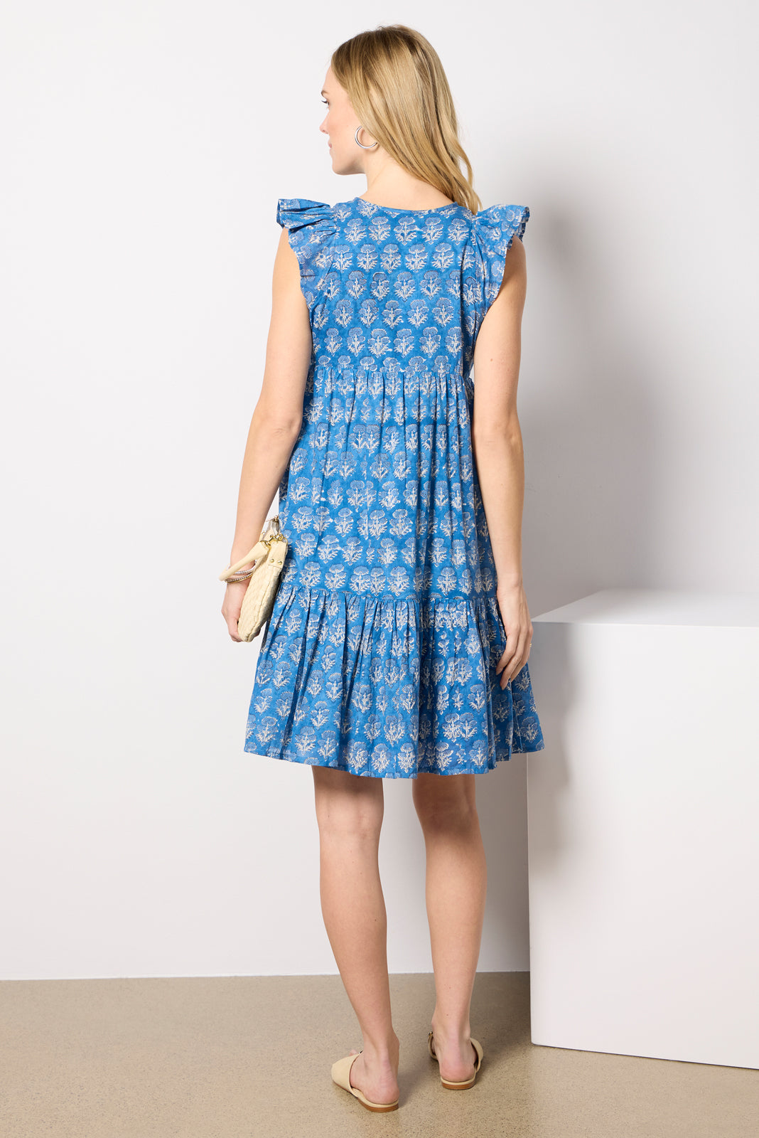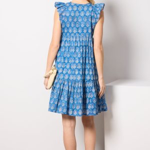 A gorgeous hand-block printeddesignelevates theAngel Dressby Emerson Fry. Crafted in organic cotton, this flowy tiered dress features a relaxed fit, flutter sleeves, and a split neckline with a tie detail.