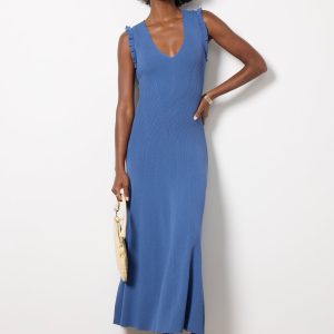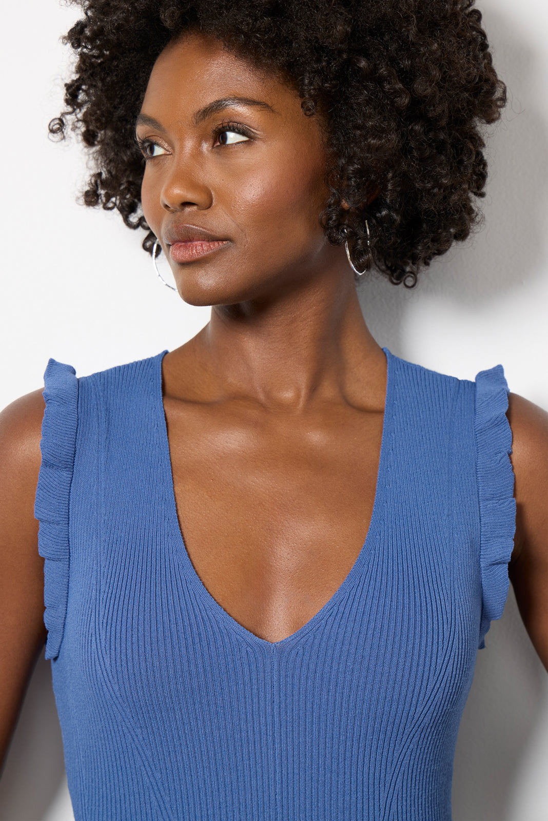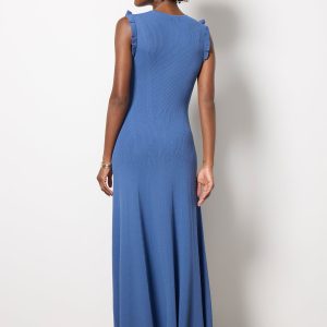 Turn heads this season in the Aniseed Dress by Paige, featuring a v-neckline, sleeveless silhouette with ruffle details, and a flattering pleated skirt.