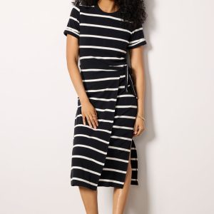 Designed to flatter, the Anna Twist Dress will be your go-to for any occasion. Crafted in a soft cotton blend, this dress features a flattering tie waist, rolled short sleeves that can be worn up or down, and a side slit for easy movement.