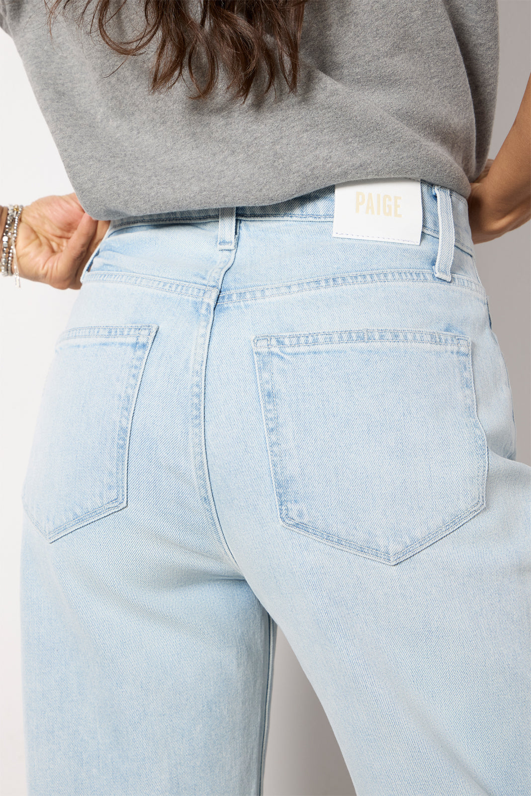 Released hems add a lived-in feel to the Arellia barrel leg jean by Paige, crafted in soft light-wash denim with a high-rise fit and ankle-length inseam.