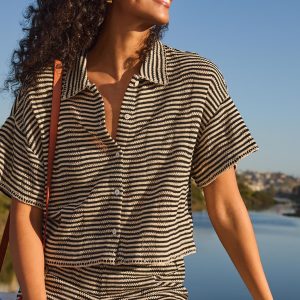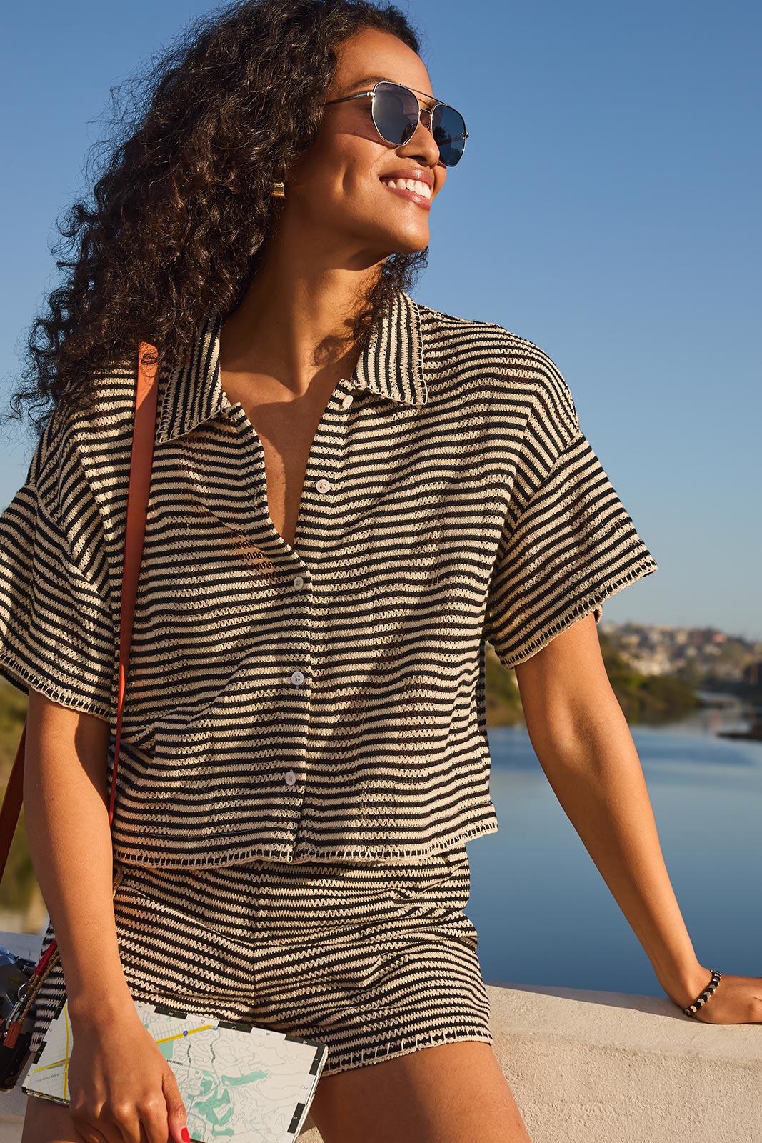 As comfortable as they are chic, these summery striped shorts by Z Supply are crafted in textured woven fabric with an elastic waistband and blanket stitch hems. Pair with the matching Monaco Button Up for the perfect warm-weather set.