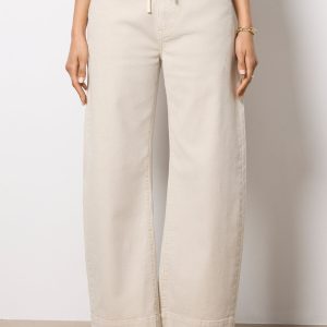 Crafted in a structured cotton with a hint of stretch, these versatile pants by Paige feature a tie waist with a zip fly, a barrel leg silhouette, and a high-waist fit.