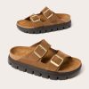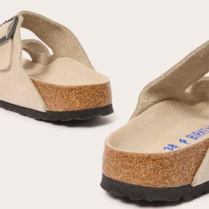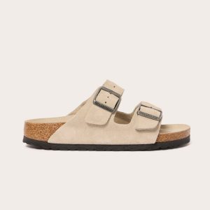 A cushioned footbed adds extra comfort to these Arizona sandals by Birkenstock, featuring adjustable buckle straps in soft suede.