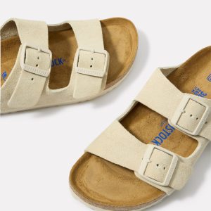 Acushioned footbed adds extra comfort to these Arizona sandals by Birkenstock, featuring adjustable buckle straps in soft suede.