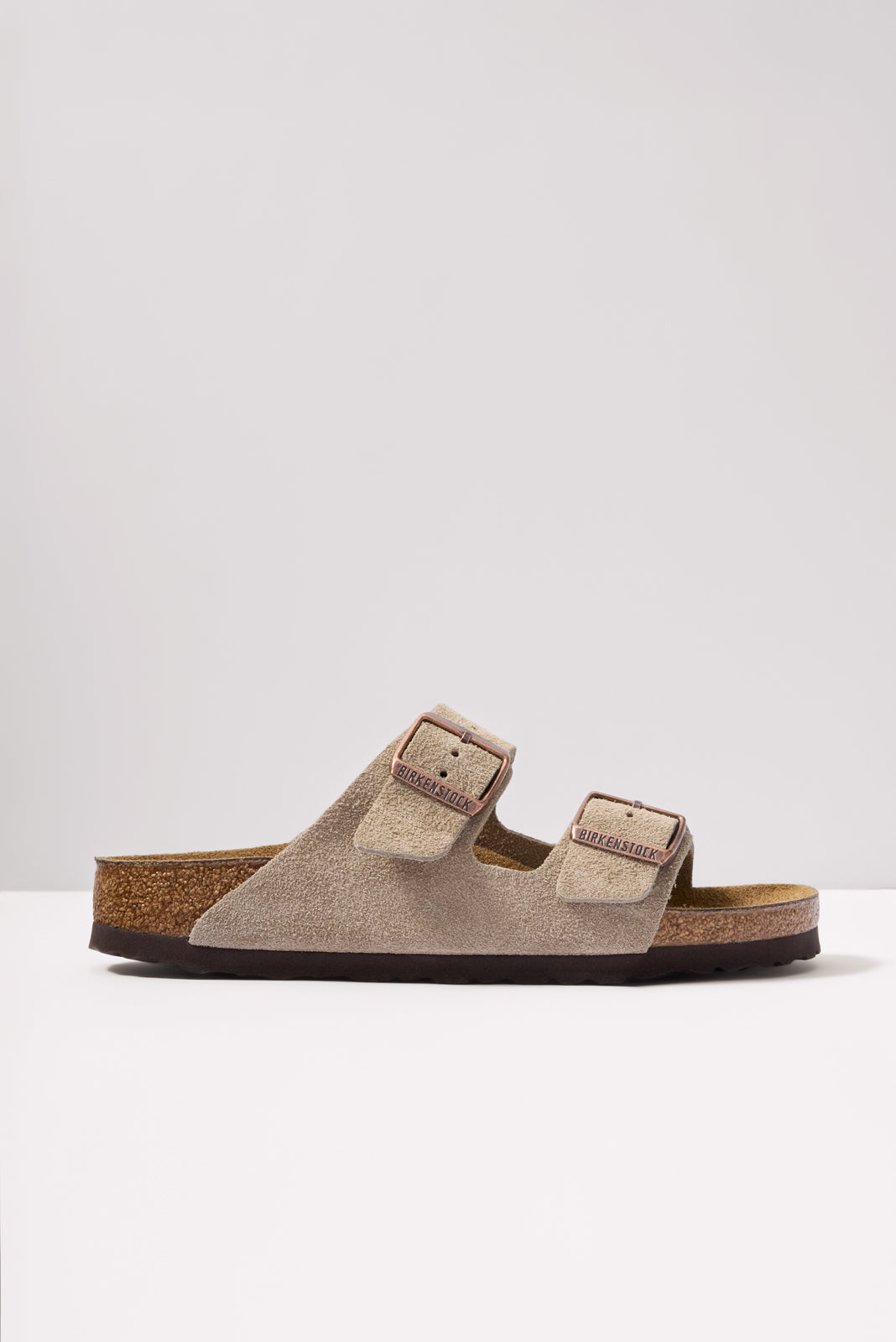 Top off your warm-weather footwear collection with the iconic Arizona sandal by Birkenstock, featuring a slip-on design, comfortable cork footbed, and suede straps with adjustable buckles.