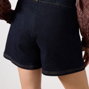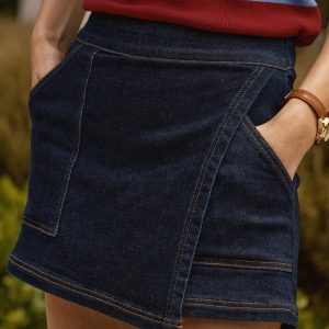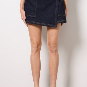 An asymmetrical front design defines this stylish denim skort by KUT From The Kloth, finished with a back zipper closure, dark blue wash, and patch pockets.
