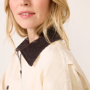 Refresh your layering collection with this chic barn jacket by Sanctuary. Finished with a contrasting corduroy collar, this zip-up jacket features a longer length, front patch pockets, and lightweight cotton fabric.