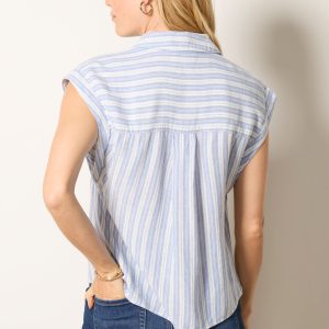 Light and breezy and perfect for all your summer activites, the Beckett Muscle Shirt by EVEREVE features a point collar, front button closures,and bra-friendly gussets at the armholes.