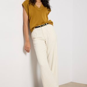 Finished in a textured linen blend, these pinstripepants by Z Supply feature a relaxed wide leg silhouette with a high-rise waist, full-length inseam, and side pockets. For a work-to-weekend look,make them a matching set with the Livingston Pinstripe Blazer.