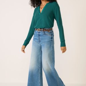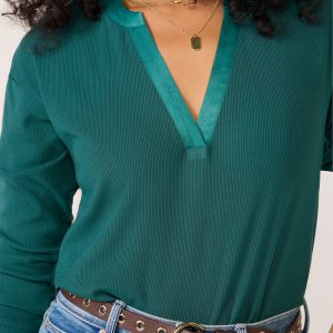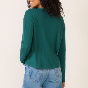 A versatile staple for everyday wear, the Bex long sleeve top by EVEREVE is crafted from soft rib knit fabric and features a split neckline with satin trim.