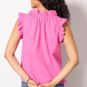 Crafted in a lightweight cotton poplin, the Bex Top from Xirena features a deep v-neck, ruffle detailing, and shirring throughout.