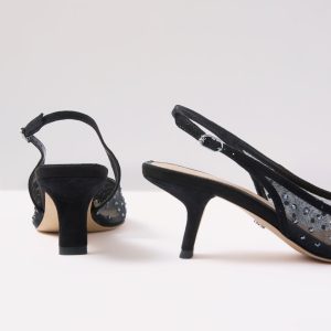 Completeany occasion-ready look with these chic slingback pumps by Sam Edelman. Finished in mesh fabric with rhinestone details, the Bianka features a pointed toe, adjustable strap, and kitten heel for the perfect lift.