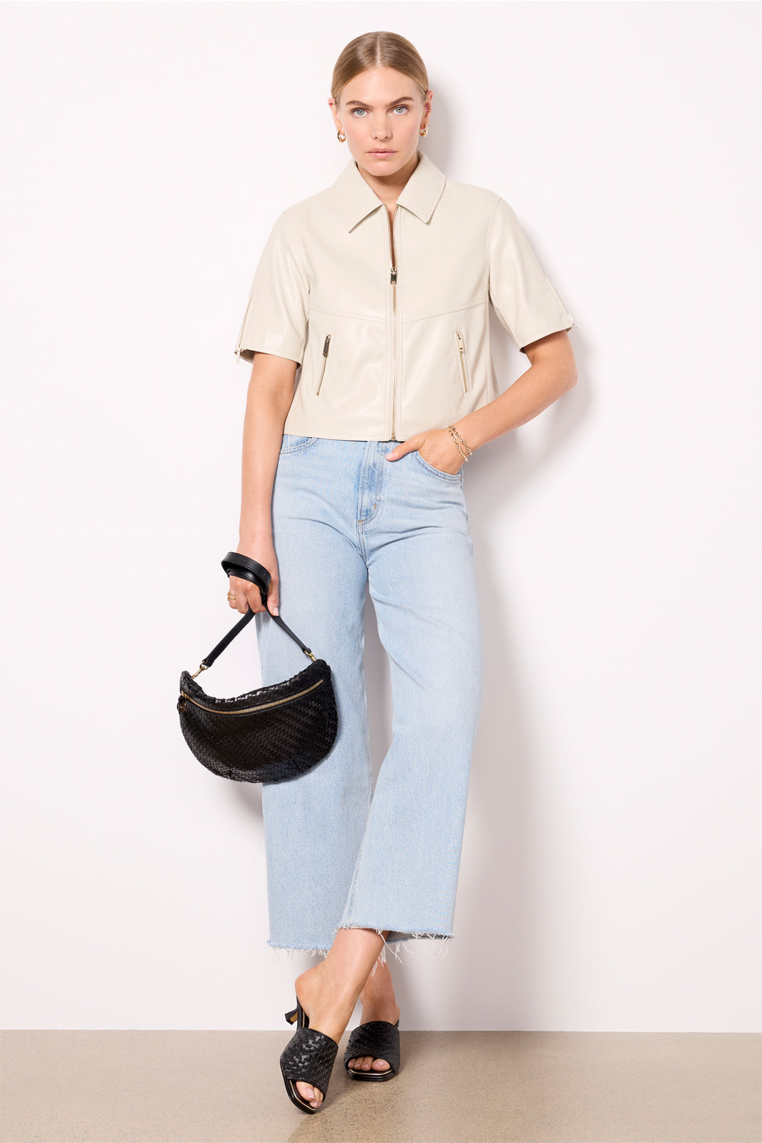The perfect addition to your transitional wardrobe, the Billie Moto by EVEREVE features a classic collar, short sleeves with zipper detailing, and a slightly cropped silhouette.